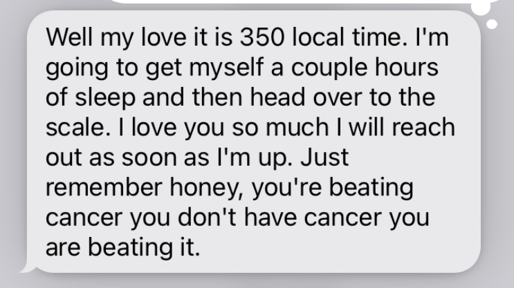 Everyone says to stay positive, and I think I do a good job most of the time. I just have moments that can turn into hours of fear and dread. I told Jeff about it. Last night he sent me this: