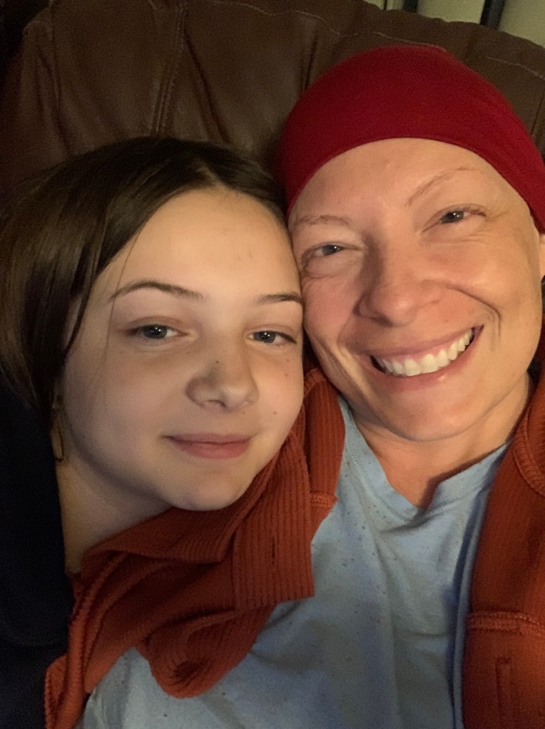 This week has been very tough. Each treatment has taken my energy levels further down. Usually on the fifth day after treatment I start to feel somewhat back to normal. Not this week. My Brie has been giving me plenty of snuggles and keeps reassuring me that I am still beautiful without my hair. However, my low energy levels has really cut into our Dutch bros & TJ Maxx runs which has bummed her out. “When are you going to feel better?” she asked me a few days ago. “When chemo is over,” I answered. “No, I mean this week,” she said in frustration. I just shrugged and gave her a hug.